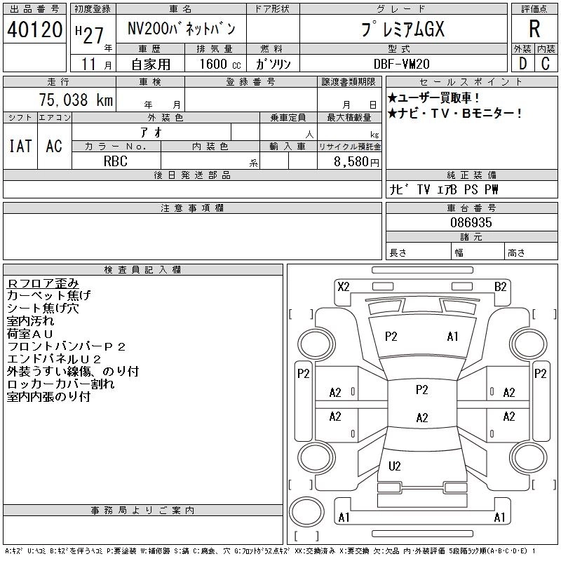 NISSAN NV200 VANETTE VAN 2015 г., лот № 40120