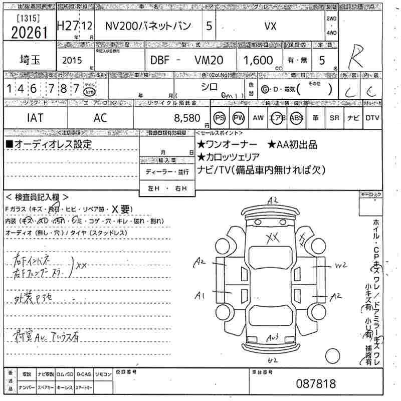 NISSAN NV200 VANETTE VAN 2015 г., лот № 20261