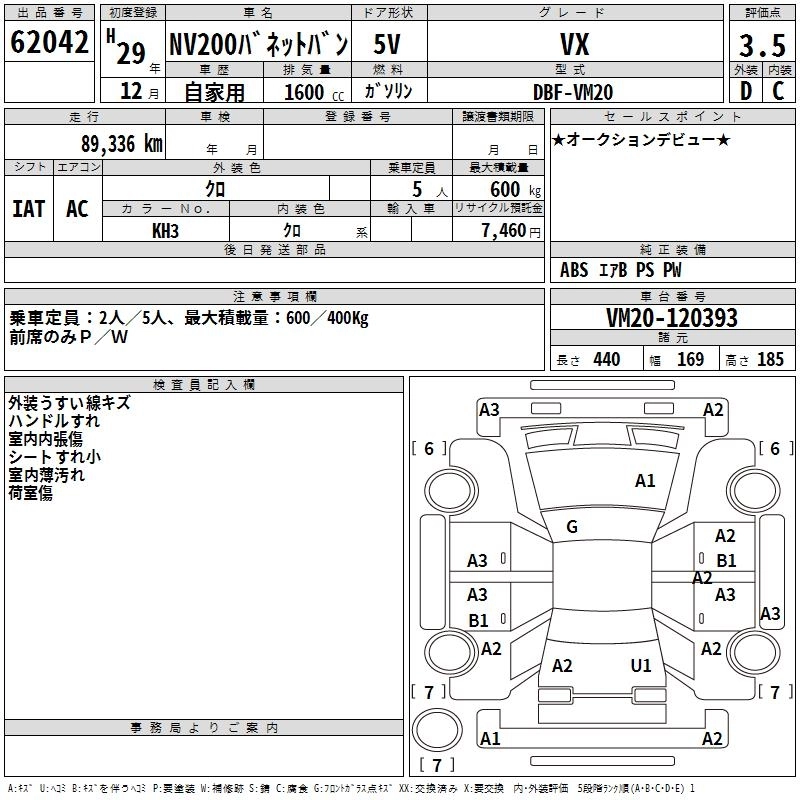 NISSAN NV200 VANETTE VAN 2017 г., лот № 62042