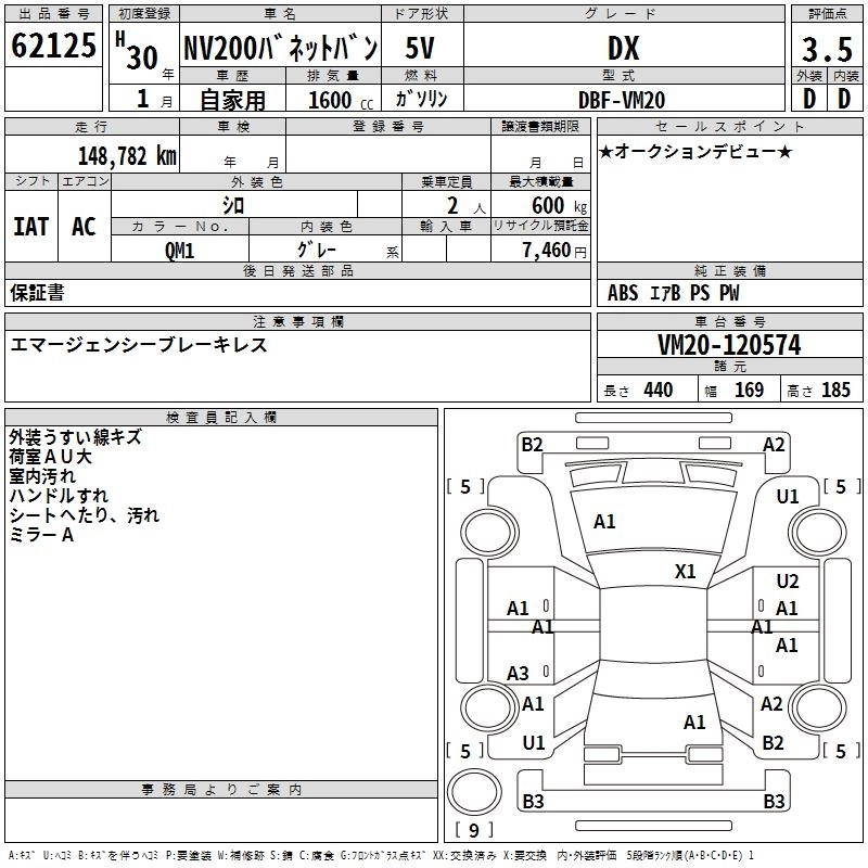 NISSAN NV200 VANETTE VAN 2018 г., лот № 62125