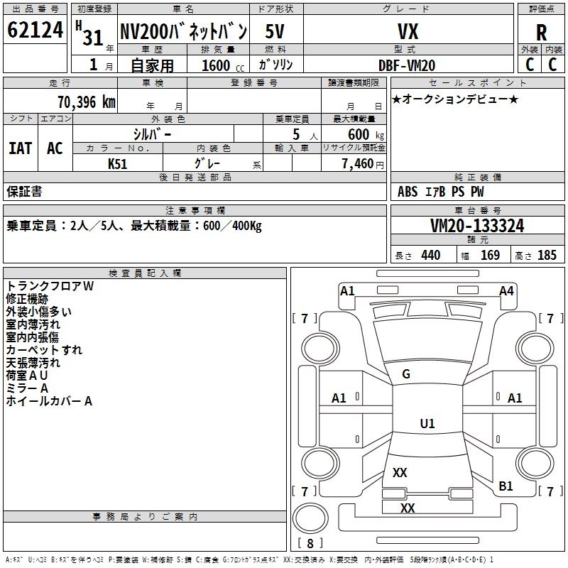 NISSAN NV200 VANETTE VAN 2019 г., лот № 62124
