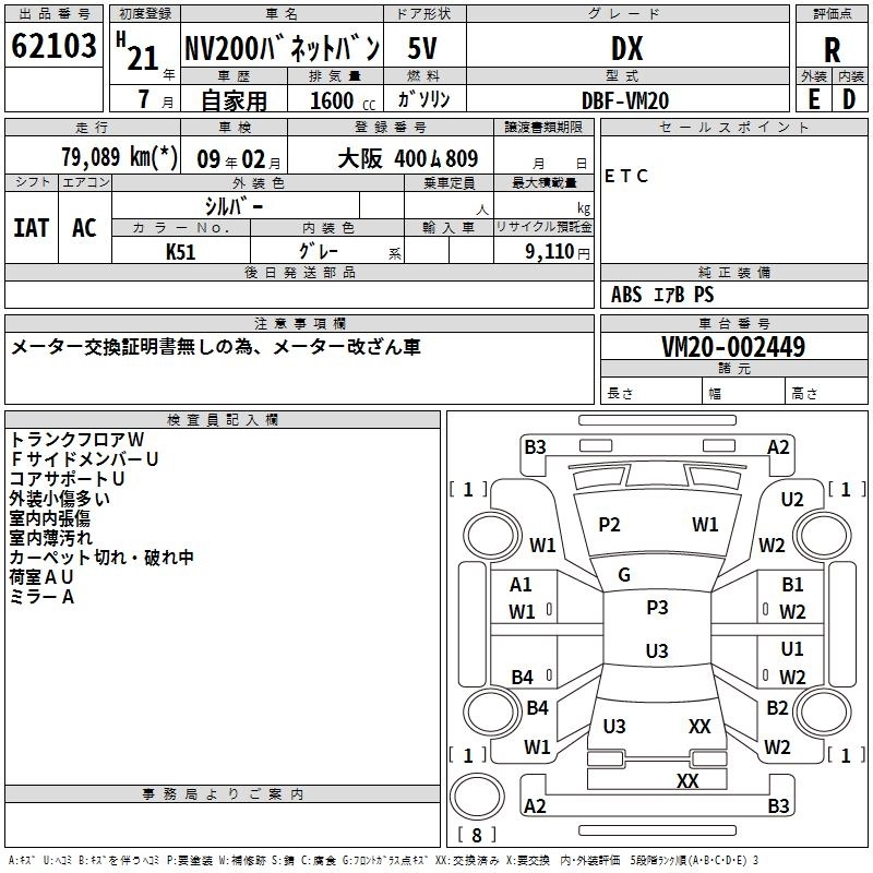 NISSAN NV200 VANETTE VAN 2009 г., лот № 62103