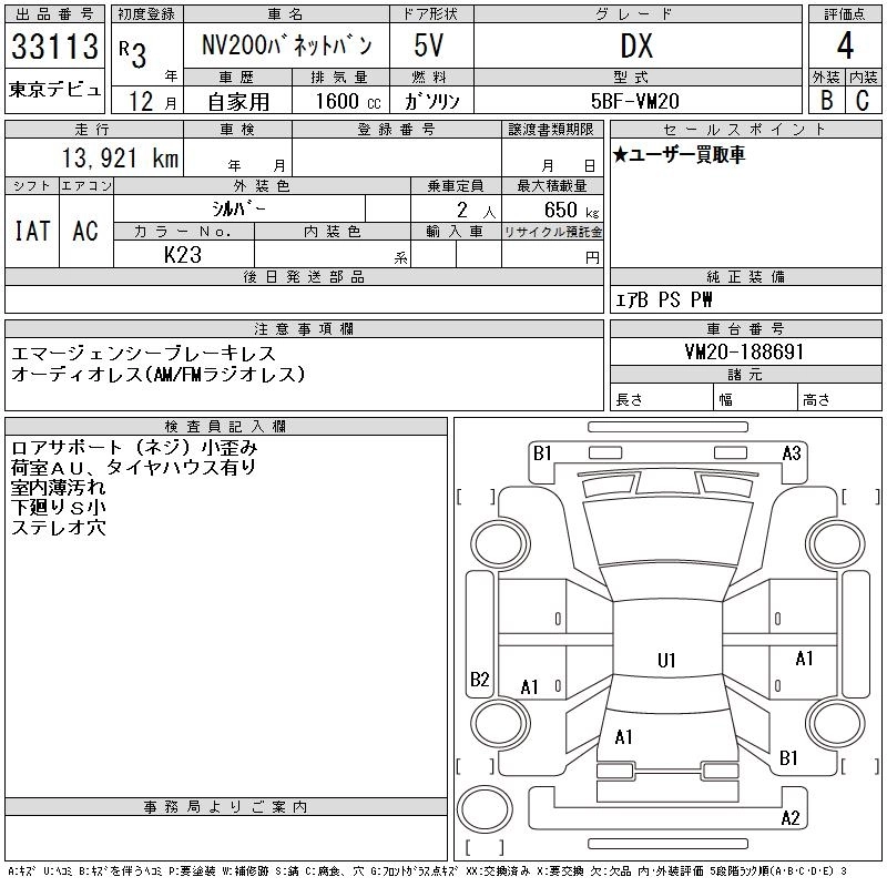NISSAN NV200 VANETTE VAN 2021 г., лот № 33113