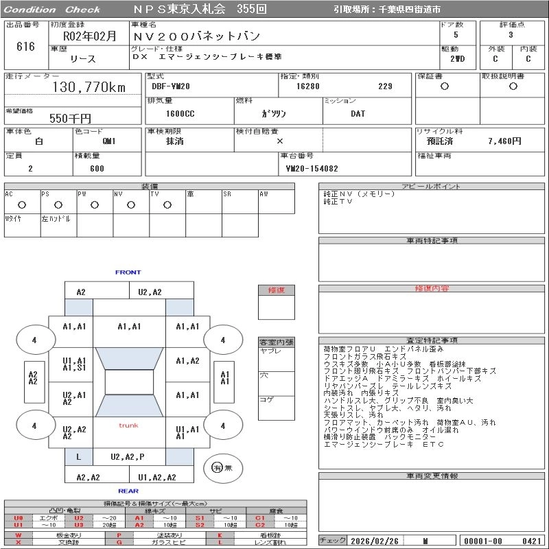NISSAN NV200 VANETTE VAN 2020 г., лот № 616