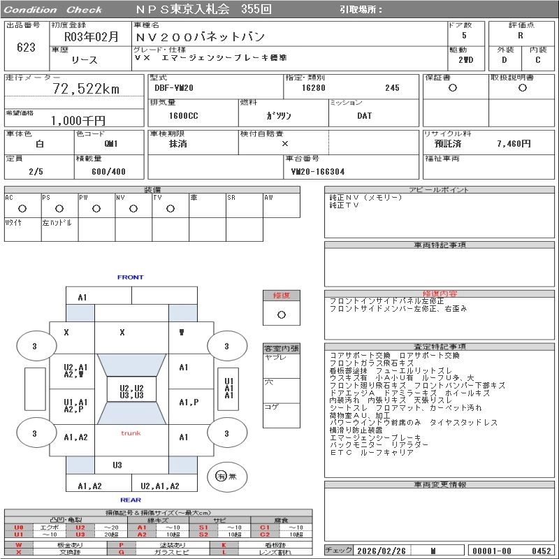 NISSAN NV200 VANETTE VAN 2021 г., лот № 623