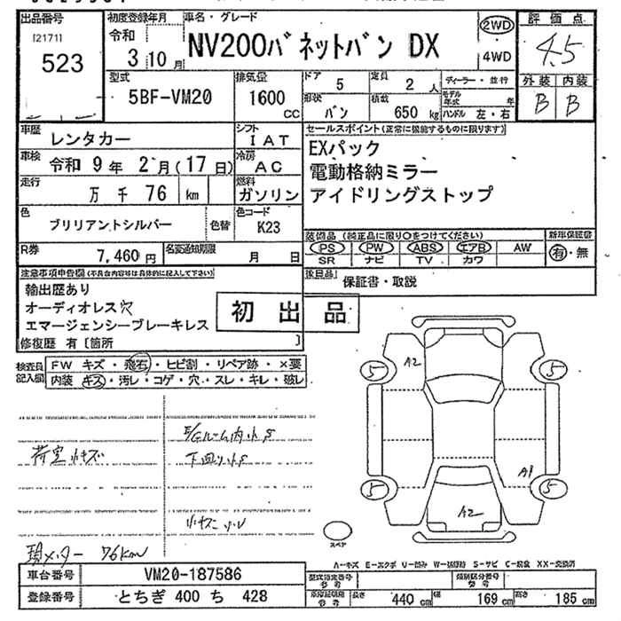 NISSAN NV200 VANETTE VAN 2021 г., лот № 523