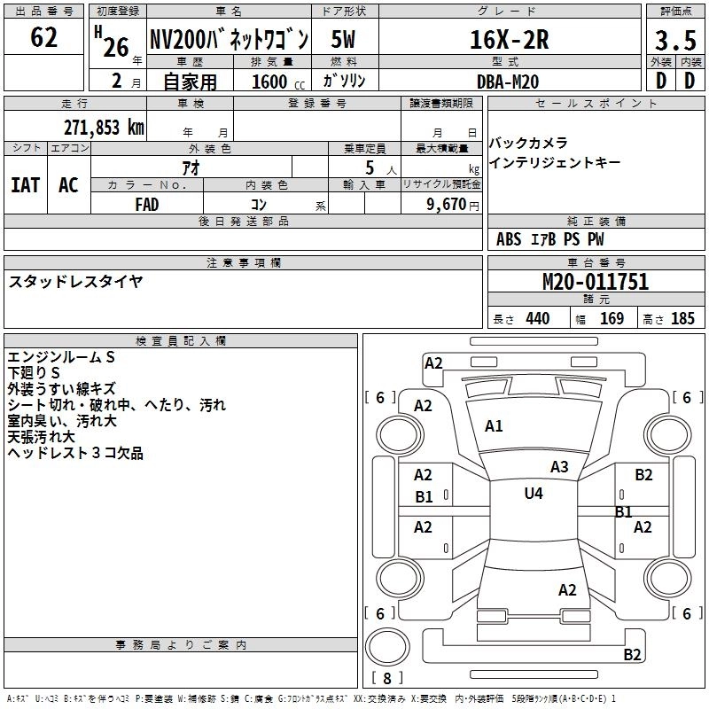 NISSAN NV200 VANETTE 2014 г., лот № 62