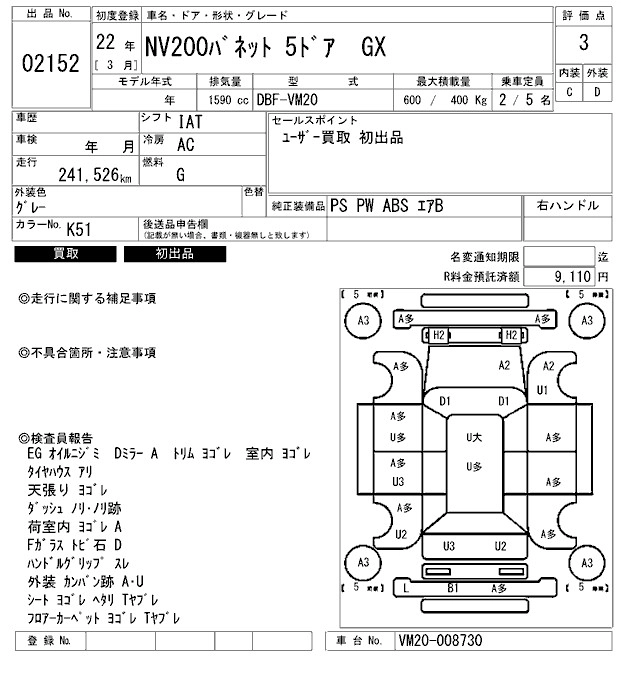 NISSAN NV200 VANETTE 2010 г., лот № 2152