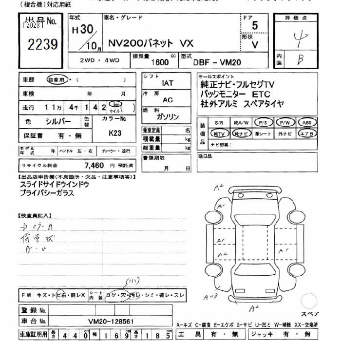 NISSAN NV200 VANETTE 2018 г., лот № 2239