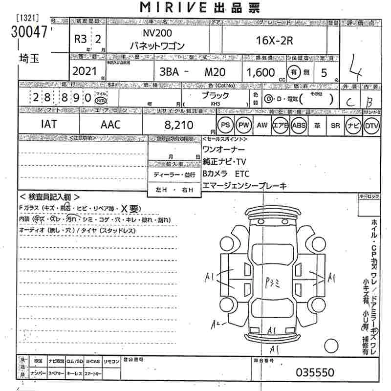 Статус выставлен на аукцион Лот 30047 Аукцион MIRIVE Saitama Дата аукциона 11.03.2026