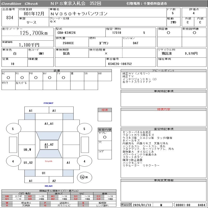 NISSAN NV350 CARAVAN WAGON 2019 г., лот № 834