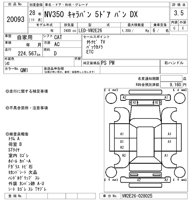 NISSAN NV350 CARAVAN 2016 г., лот № 20093