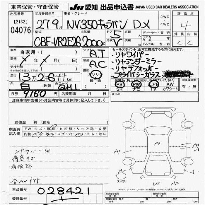 NISSAN NV350 CARAVAN 2015 г., лот № 4076