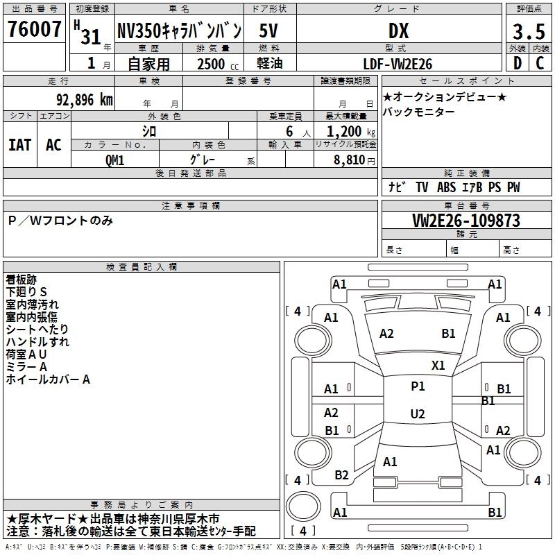 NISSAN NV350 CARAVAN 2019 г., лот № 76007