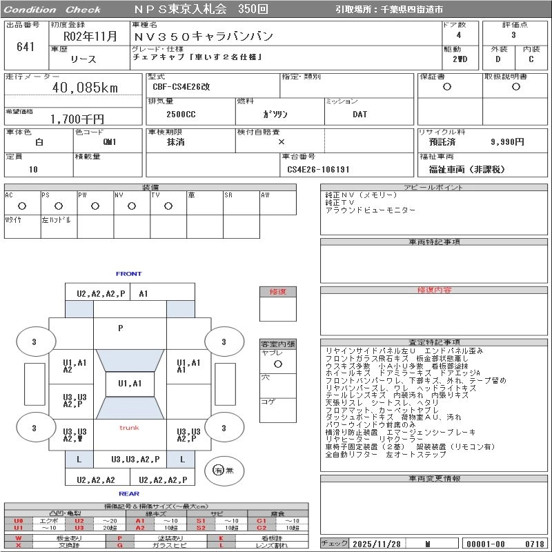 40 000 км КузовCS4E26 Комплектация CHAIR CAB [ WHEELCHAIR 2 NAME SPECIFICATION ]