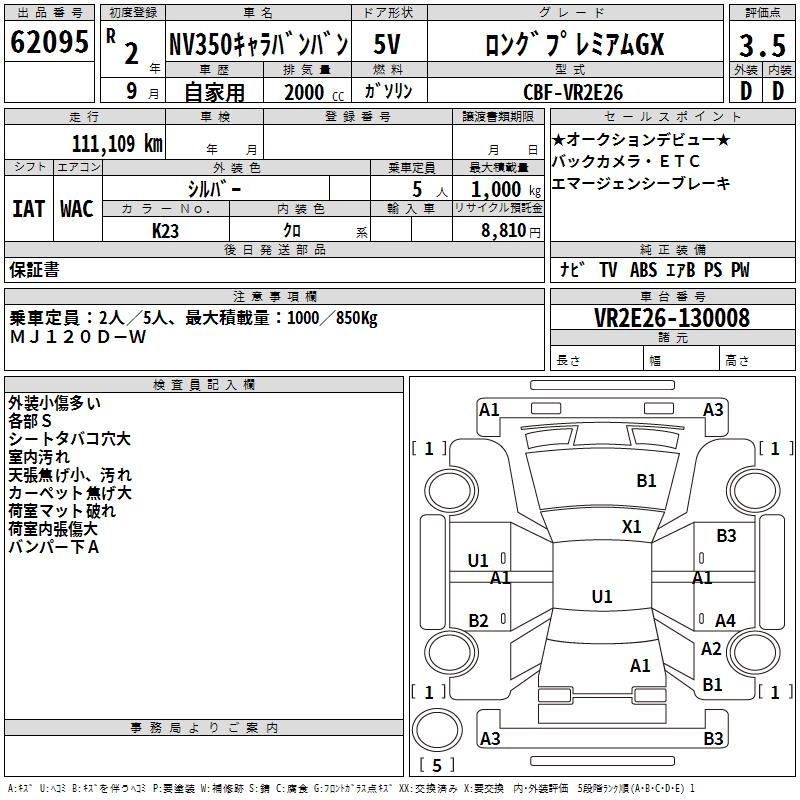 NISSAN NV350 CARAVAN 2020 г., лот № 62095