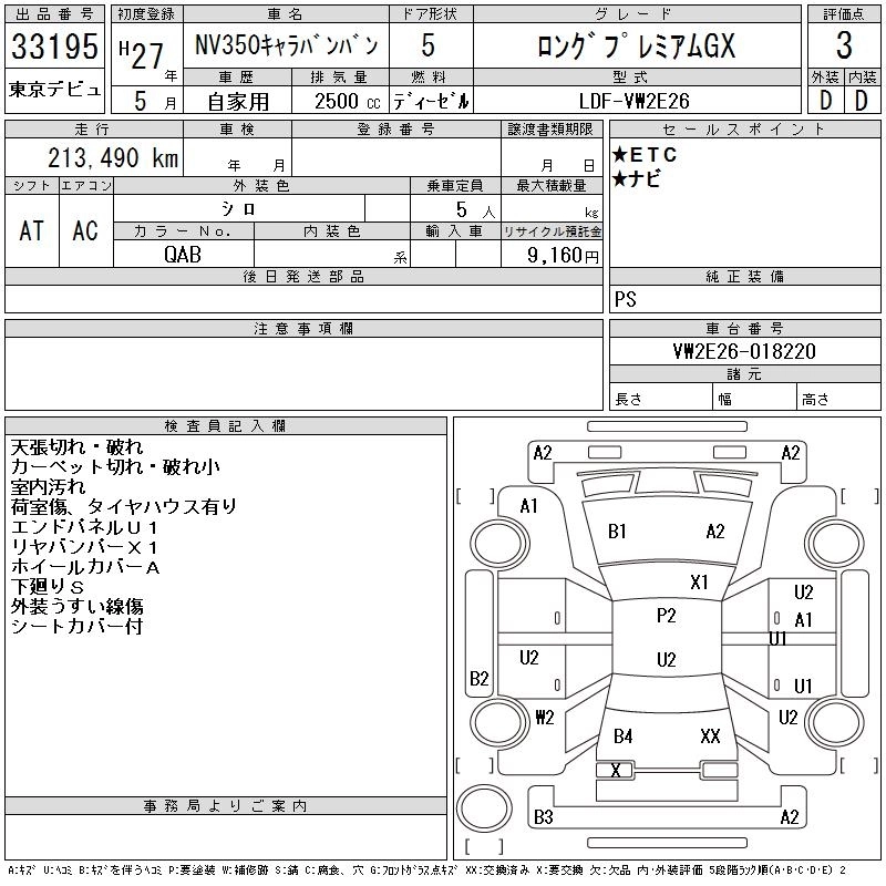 NISSAN NV350 CARAVAN 2015 г., лот № 33195