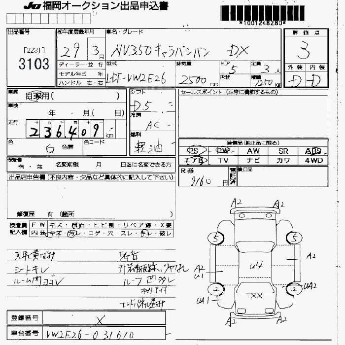 NISSAN NV350 CARAVAN 2017 г., лот № 3103