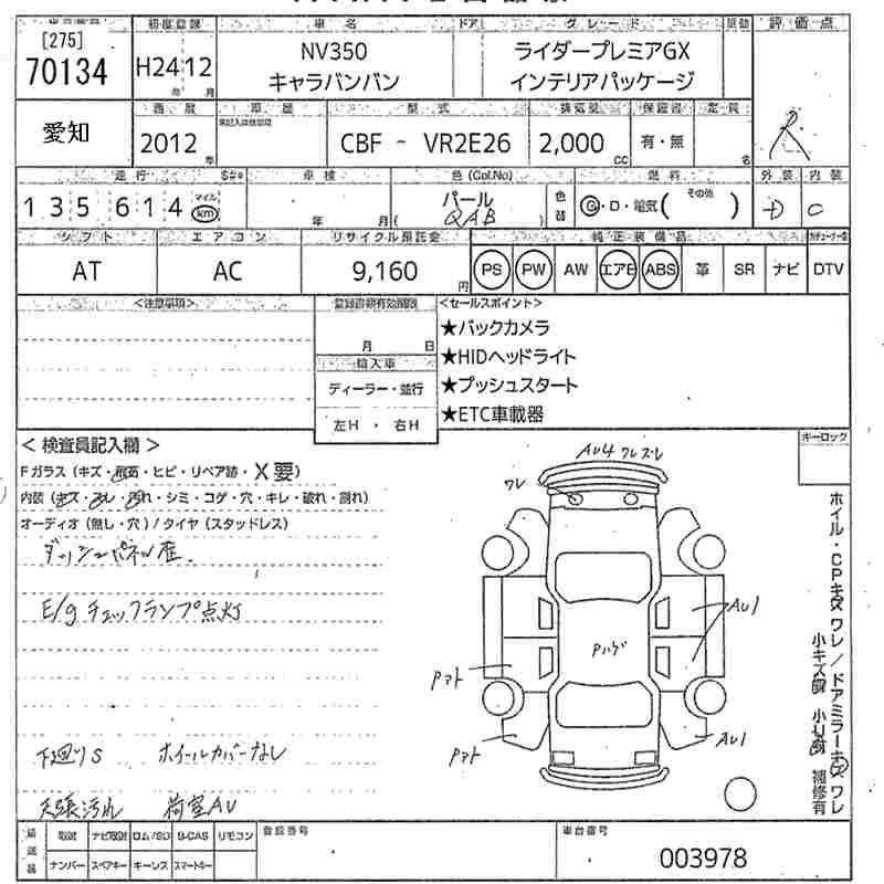 NISSAN NV350 CARAVAN 2012 г., лот № 70134