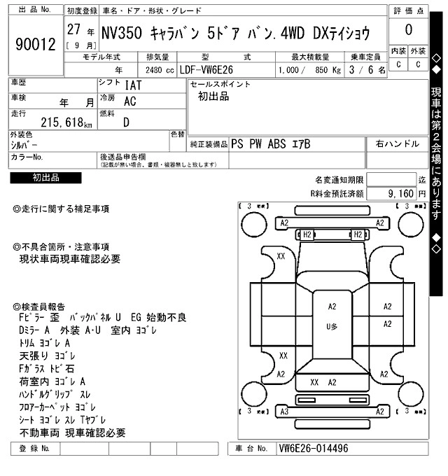 NISSAN NV350 CARAVAN 2015 г., лот № 90012