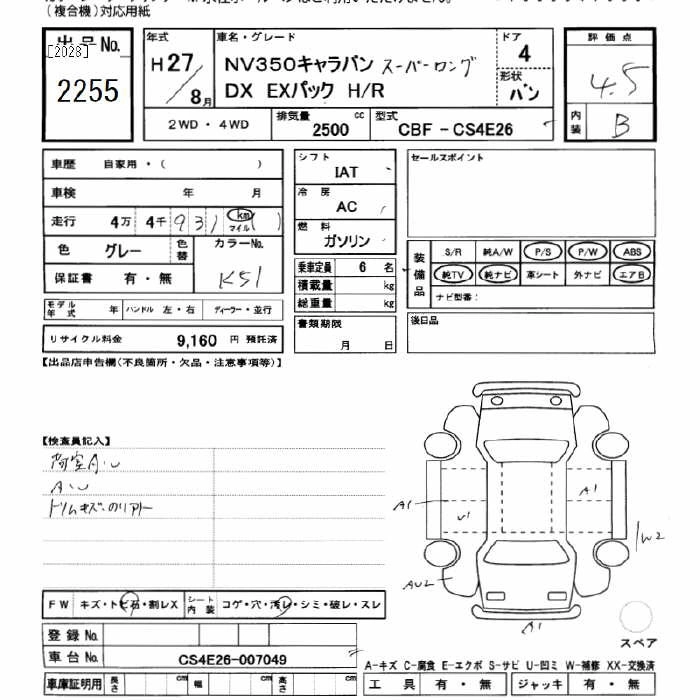 NISSAN NV350 CARAVAN 2015 г., лот № 2255