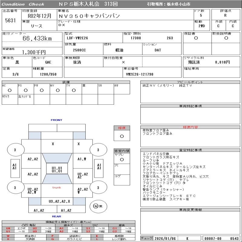 Статус выставлен на аукцион Лот 5631 Аукцион NPS Tochigi Дата аукциона 27.01.2026
