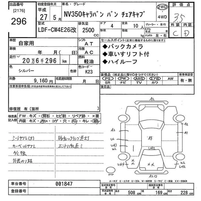 NISSAN NV350 CARAVAN 2015 г., лот № 296