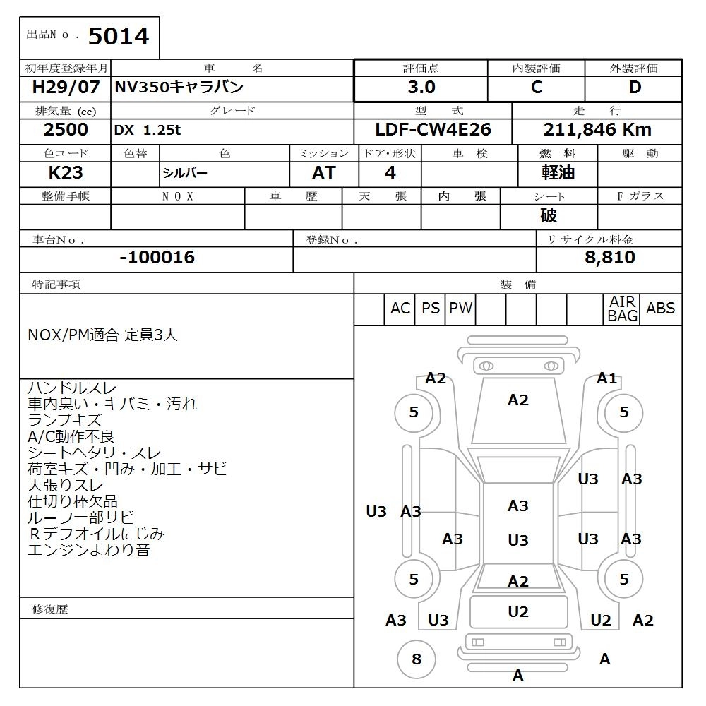Статус продан Лот 5014 Аукцион Nissan Osaka Дата аукциона 09.03.2026