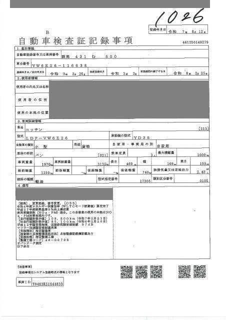 NISSAN NV350 CARAVAN 2021 г., лот № 1026