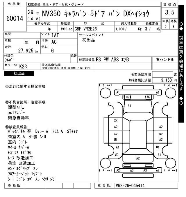 NISSAN NV350 CARAVAN 2017 г., лот № 60014