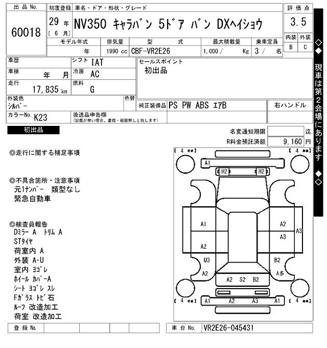NISSAN NV350 CARAVAN 2017 г., лот № 60018