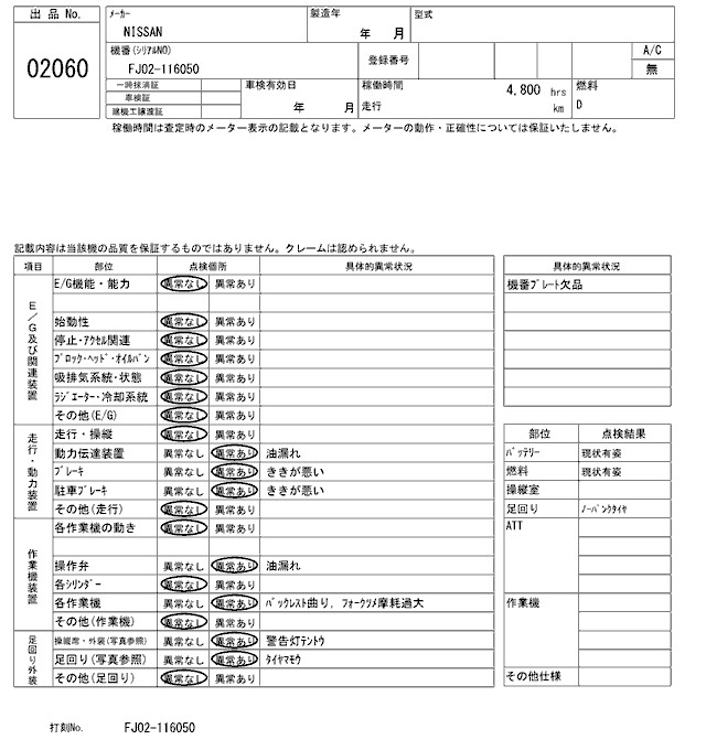Статус выставлен на аукцион Лот 2060 Аукцион ARAI Kenki Дата аукциона 27.01.2026
