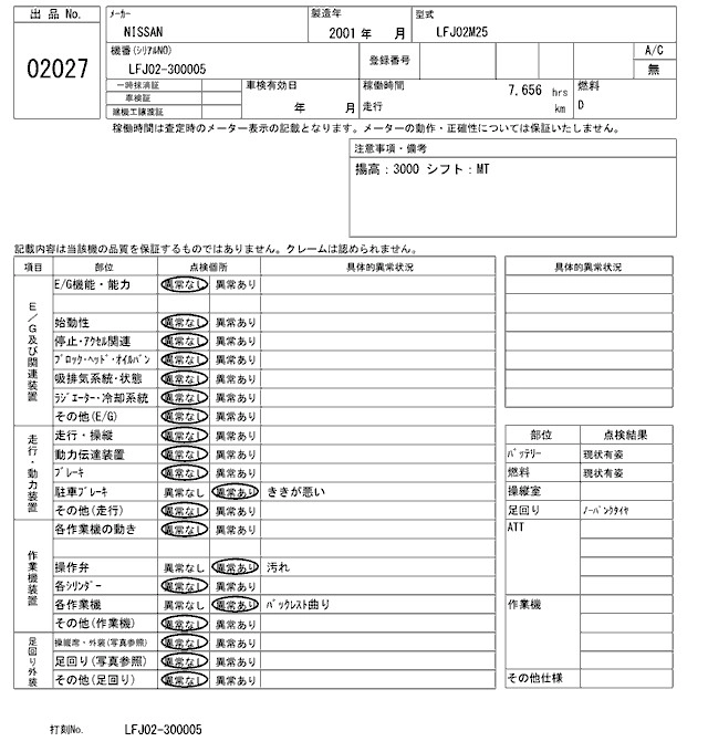 NISSAN OTHER 2001 г., лот № 2027