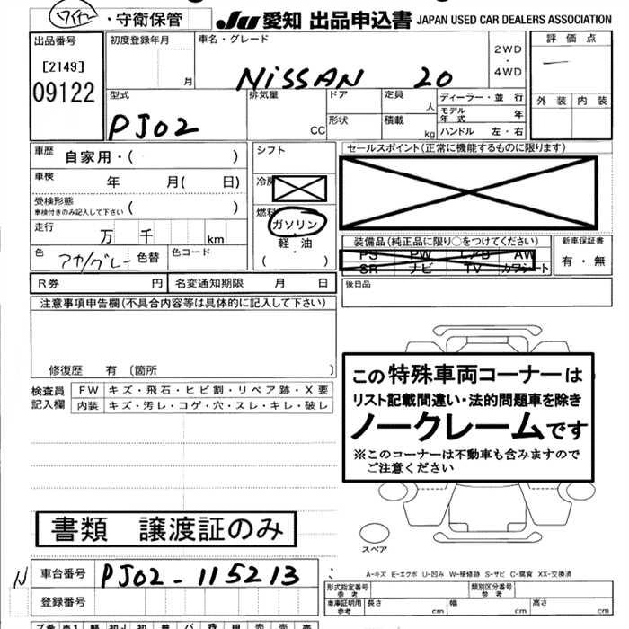 Статус выставлен на аукцион Лот 9122 Аукцион JU Aichi Дата аукциона 12.03.2026