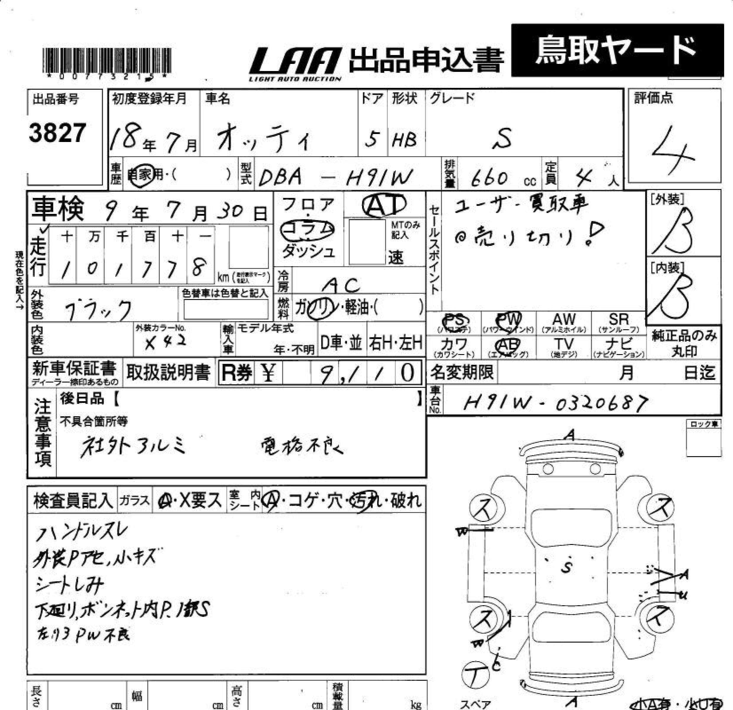 Статус продан Лот 3827 Аукцион LAA Okayama Дата аукциона 23.01.2026