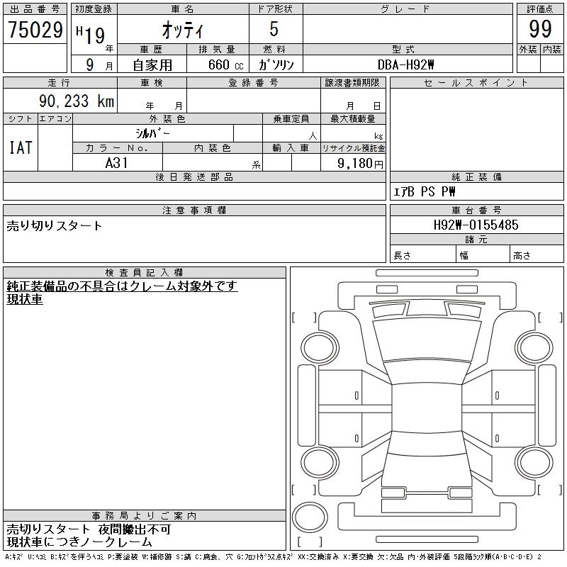 Статус выставлен на аукцион Лот 75029 Аукцион CAA Chubu Дата аукциона 11.03.2026