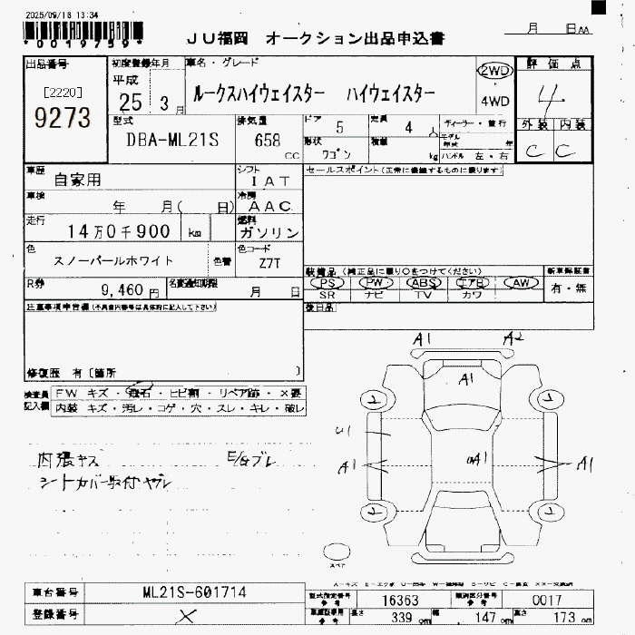 Статус выставлен на аукцион Лот 9273 Аукцион JU Fukuoka Дата аукциона 24.10.2025
