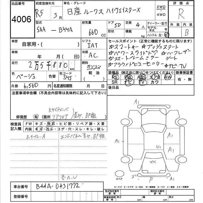 NISSAN ROOX 2023 г., лот № 4006