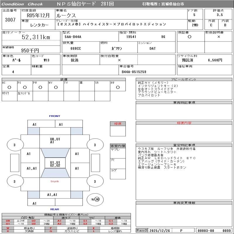 Статус выставлен на аукцион Лот 3007 Аукцион NPS Sendai Дата аукциона 27.01.2026