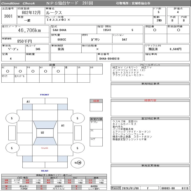 Статус выставлен на аукцион Лот 3001 Аукцион NPS Sendai Дата аукциона 27.01.2026