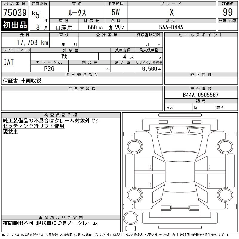 Статус выставлен на аукцион Лот 75039 Аукцион CAA Chubu Дата аукциона 28.01.2026
