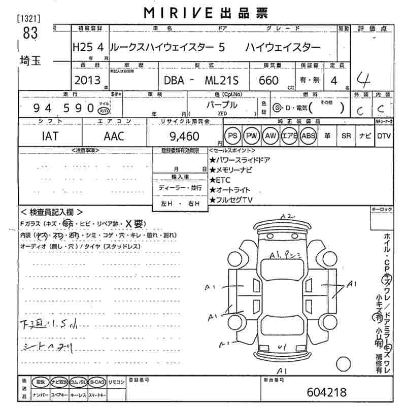 Год выпуска2013 Пробег 95 000 км КузовML21S Комплектация HIGHWAY STAR
