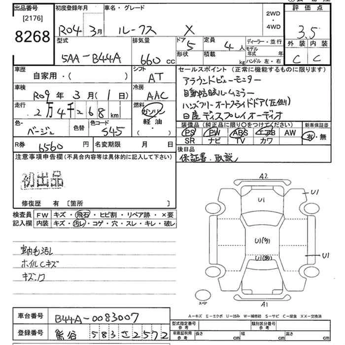 Статус продан Лот 8268 Аукцион JU Tokyo Дата аукциона 09.03.2026