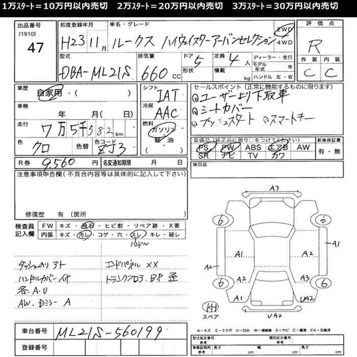Стартовая цена авто на аукционе 20 000 ¥