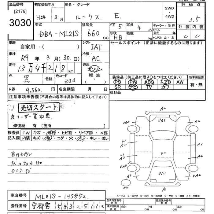 Статус продан Лот 3030 Аукцион JU Tokyo Дата аукциона 09.03.2026