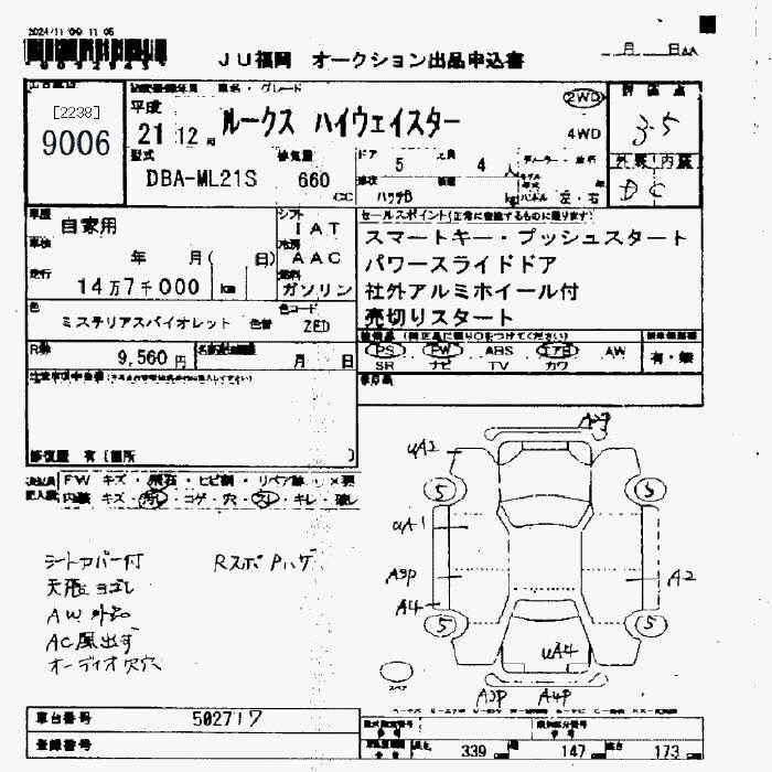 Статус выставлен на аукцион Лот 9006 Аукцион JU Fukuoka Дата аукциона 13.03.2026
