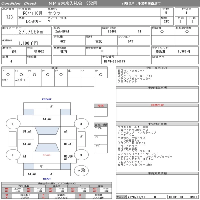 NISSAN SAKURA 2022 г., лот № 123