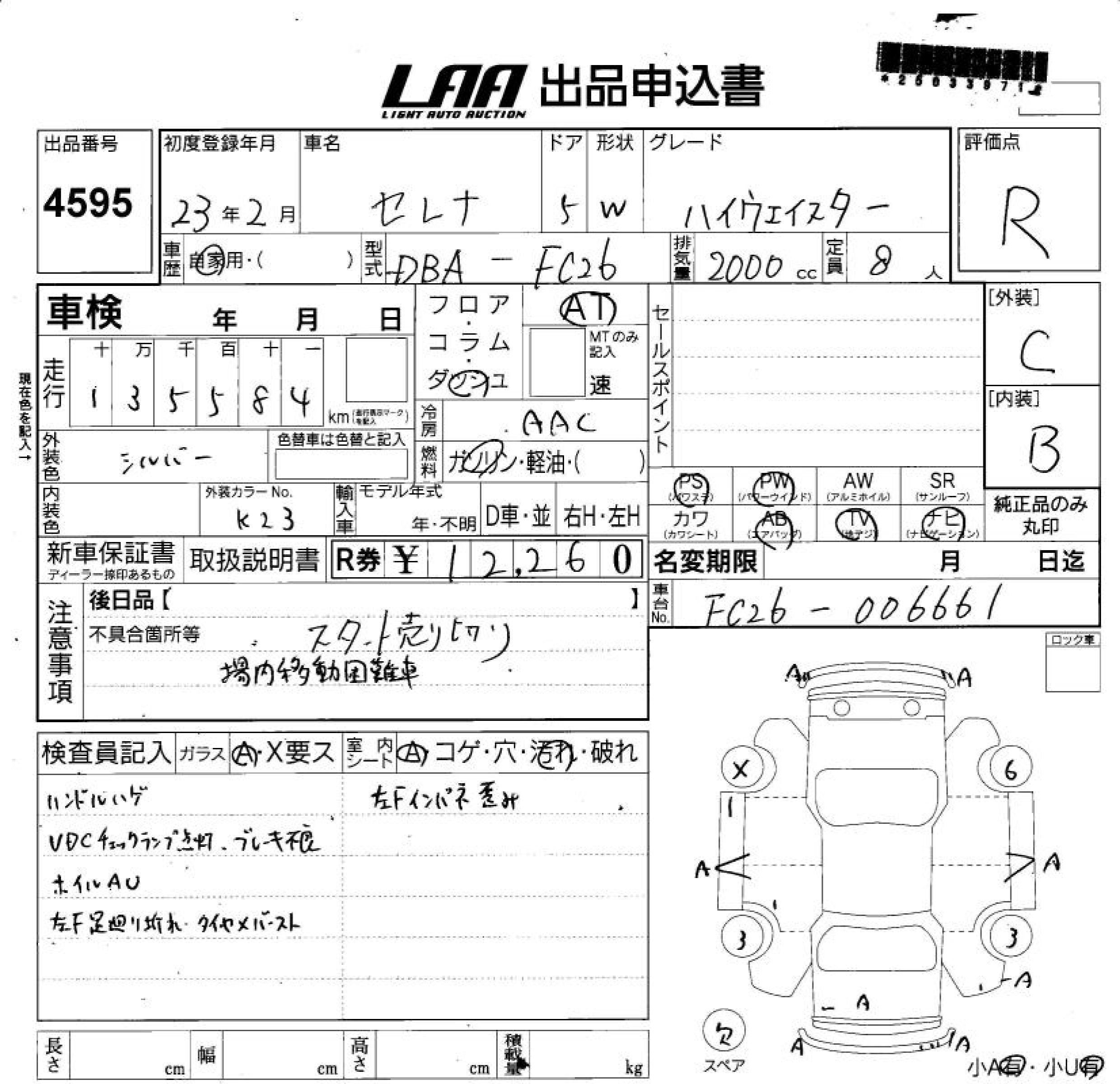 NISSAN SERENA 2011 г., лот № 4595