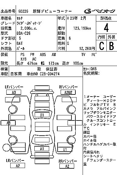 NISSAN SERENA 2011 г., лот № 60226