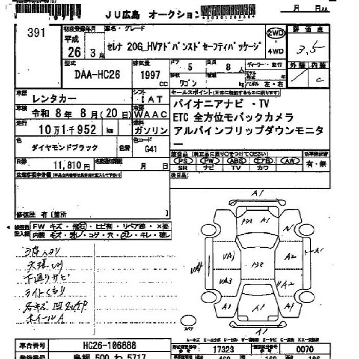 NISSAN SERENA 2014 г., лот № 391